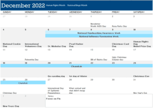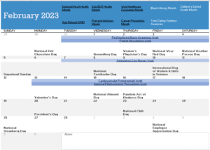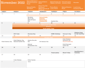 Our goal in MarCom is to make you a BIG part of what we’re doing and when it happens. This calendar is a starting point. There are so many months, weeks, and days aimed at recognizing YOU and others. We don’t want to leave anyone out.